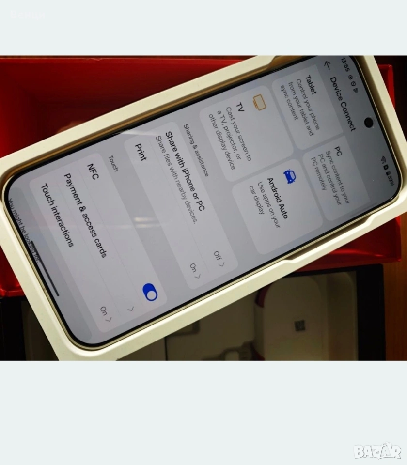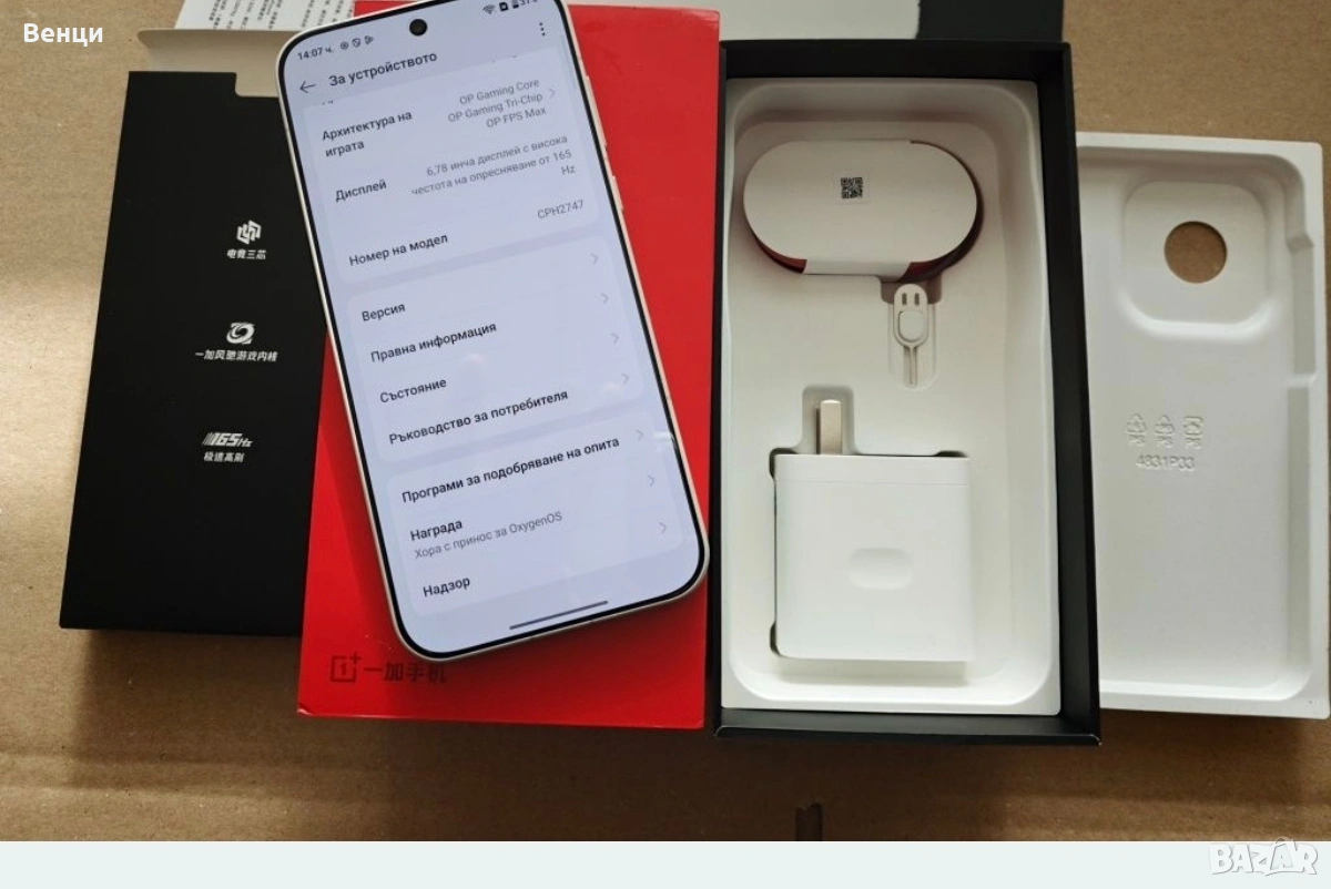 Продавам нов смартфон OnePlus 15 с памет 12GB RAM и 256GB вградена памет. Чисто нов ! Телефонът е фабрично ЗАПЕЧАТАН ! Бартери не ме интересуват! Снимките са от 2-я тел.,който вече го взеха. Налични 1бр. черен цвят. Безпроблемно работи с всички оператори ! Многоезичен интерфейс с Андроид 16 Пълна поддръжка на Еsim карти реално тествано и Android Auto! Процесор ONEPLUS 15 се захранва от най-модерния чипсет Qualcomm Snapdragon Elite 5-то поколение, осигуряващ безпроблемно и без забавяне изживяване дори за най-взискателните приложения и игри. Дисплей Похвалете се с визуалното си съдържание на зашеметяващ 6,78-инчов AMOLED дисплей с резолюция 1.5K, който предлага отчетливо и ярко зрително изживяване, идеално за завладяващо забавление и игри. Камера Запечатайте житейските моменти с яснота, използвайки 50-мегапикселовата основна камера Sony LYTIA, допълнена от 50-мегапикселов ултраширокоъгълен обектив и 50-мегапикселова перископна телеобективна камера за обширни кадри и гъвкавост, за да поберете повече в кадъра си. Език: Български , английски, немски, испански, филипински, ,френски, индонезийски, италиански, мелаю, холандски, португалски, тиетнамски, руски, уйгурски, арабски, непалски, хинди, бангла, тайландски, лаоски, тибетски, бирмански, кхмерски, корейски, японски и др. Живот на батерията Останете свързани по-дълго с издръжлива батерия от 7300 mAh, която поддържа бързо зареждане от 120 W, гарантирайки, че никога няма да останете без захранване, когато имате най-голяма нужда от него. Дизайн Елегантният и модерен дизайн на ONEPLUS 15 не само изглежда страхотно, но и предлага удобен захват и издръжливост, които могат да издържат на трудностите на ежедневната употреба. Софтуер Работи с най-новата версия на многоезичният вкл. БГ Oxygen OS 16, осигуряваща изчистен, бърз и интуитивен потребителски интерфейс, който подобрява цялостното потребителско изживяване. Памет и RAM Предлаган в множество конфигурации, ONEPLUS 15 предлага достатъчно опции за съхранение 256 GB и RAM 12 , за да задоволи нуждите на всеки потребител, от обикновено сърфиране до интензивна многозадачност. Параметър на продукта МРЕЖА Технология GSM / WCDMA / LTE / 5G КОРПУС Размери 161.42 x 76.67 x 8.1 мм или 8.2 мм Тегло 211 г или 215 г Конструкция Стъклен преден панел, стъклен заден панел, пластмасова рамка SIM карта Две SIM карти (Nano-SIM, двоен режим на готовност) IP68, водоустойчив и прахоустойчив ДИСПЛЕЙ Тип AMOLED, 1B цвята, 120Hz, Dolby Vision, HDR10+, 800 нита (HBM), 1800 нита (пик) Размер 6.78 инча, (~95.5% съотношение екран-тяло) Резолюция 2772×1272 пиксела (~450 ppi плътност) ПЛАТФОРМА ОС Android 16 , OXYGEN OS 16 Чипсет Qualcomm Snapdragon Elite Gen 5 3 nm Процесор Осемядрен (2x4.608 GHz Oryon V2 Phoenix L + 6x3.53 GHz Oryon V2 Phoenix M Графичен процесор Adreno 840 ПАМЕТ Слот за карта памет: Не Вътрешна 256GB 12GB RAM, UFS 4.1 Задни камери: 50 MP, f/1.8, 24 мм (широкоъгълен), 6P обектив, многопосочен PDAF, OIS 50 MP, f/2.8, 85 мм (перископ телефото), 3.5x оптично увеличение, PDAF, OIS 50 MP, f/2.0, 16 мм, 116˚ (ултраширокоъгълен), PDAF Калибриране на цветовете на Hasselblad, двойна LED светкавица, HDR, панорама 8Kс 30fps, 4K 30/60fps, 1080p 30/60/240/480fps, автоматичен HDR, жироскопична стабилизация , Dolby Vision СЕЛФИ КАМЕРА Единична 32 MP, f/2.4, 21 мм (широкоъгълна), 1/2.74", 0.8µm HDR, панорама Видео 4K с 30/60fps, 1080p с 30/60fps, жироскоп-EIS ЗВУК Високоговорител Да, със стерео високоговорители 3.5 мм жак Не КОМУНИКАЦИИ WLAN Wi-Fi 802.11 a/b/g/n/ac/6/7, двубандова или трибандова, Wi-Fi Direct Bluetooth 5.4, A2DP, LE, aptX HD, LHDC 5 GPS (L1+L5), GLONASS (G1), BDS (B1I+B1c+B2a), GALILEO (E1+E5a), QZSS (L1+L5), NavIC Инфрачервен порт Да Радио Не USB Type-C 3.2, OTG Скене