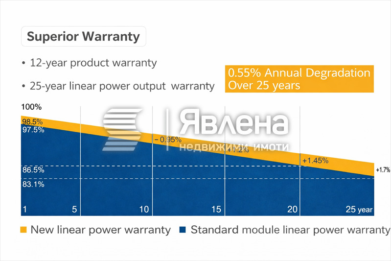 Фотоволтаичната система е изградена с висок клас оборудване и модерни инверторни решения, осигуряващи висока ефективност, надеждност и ниски експлоатационни разходи.