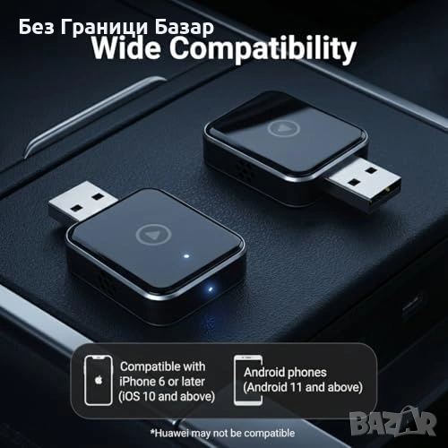 2 в 1 безжичен адаптер за CarPlay и Android Auto