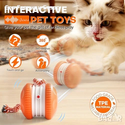 Нова Акумулаторна интерактивна топка за кучета котки с въже и сензор играчка