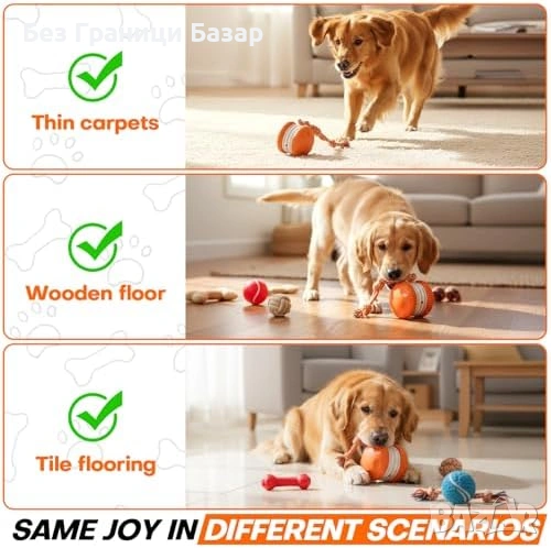 Подходяща за игра на закрито върху плочки, твърд под и тънки килими