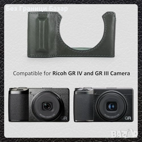 Нов Калъф от естествена кожа за фотоапарат Ricoh GR III GR IV зелен кейс