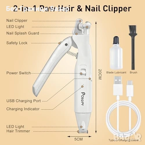 2 в 1 уред за подстригване на лапи и рязане на нокти