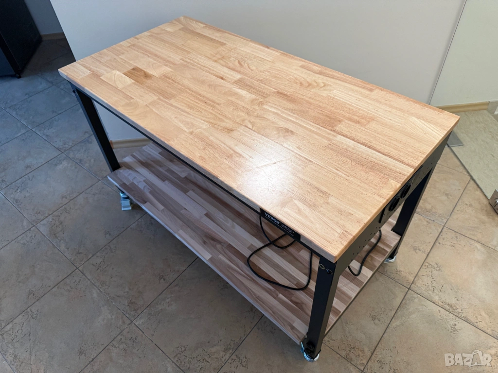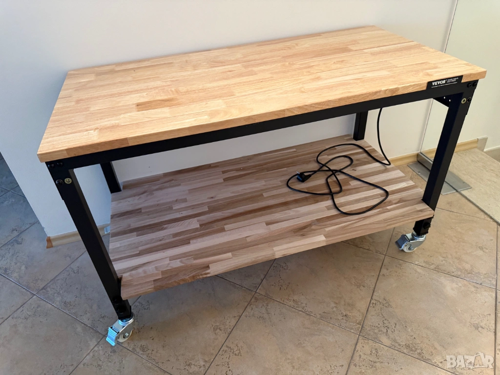 Работната маса Vevor е надежден и издръжлив избор за управление на тежки задачи и създаване на организирано работно пространство. Неговата здрава дървена конструкция, значителна товароносимост и допълнителна подвижност на колела го правят практично допълнение към различни работни условия. Топлото кафяво покритие добавя нотка на изтънченост, като същевременно гарантира, че се интегрира перфектно в избрания декор.