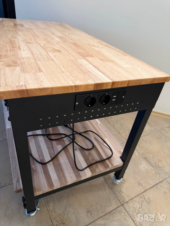 Работната маса Vevor е универсално и здраво решение, проектирано да посрещне широк спектър от нужди за работа и съхранение. Изработена от здрава дървесина, тази маса има впечатляваща товароносимост от 900 килограма, което я прави идеална за тежки товари в работилници, гаражи или индустриални среди. Това, което отличава тази маса, е нейната мобилност, благодарение на включените колела, позволяващи лесно позициониране и адаптивност във вашето работно пространство. Със своята правоъгълна форма и размери от 121x60 см, той предлага щедра повърхност за работа по проекти, организиране на инструменти или съхранение на оборудване. Топлото кафяво покритие не само добавя нотка естествена елегантност, но също така осигурява съвместимост с широка гама от стилове на интериорен дизайн, което го прави подходящ за професионална или домашна употреба.