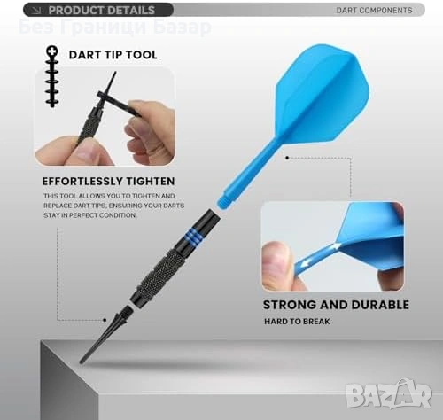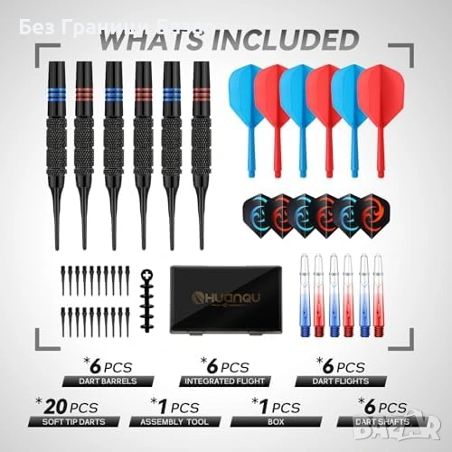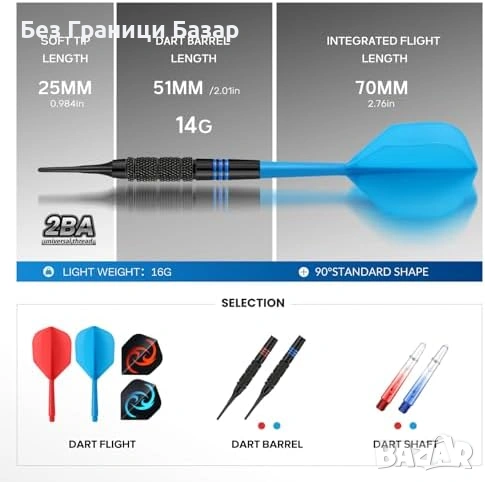 Комплект от 6 меки дартс стрели по 16 г, подходящи за електронни дартс мишени