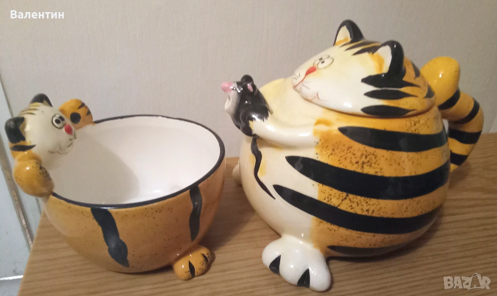 Интересен керамичен комплект чайник и купа → Обява 54129313