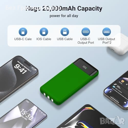 Нова Преносима батерия 26800mAh с вградени кабели за iPhone Samsung Power Bank