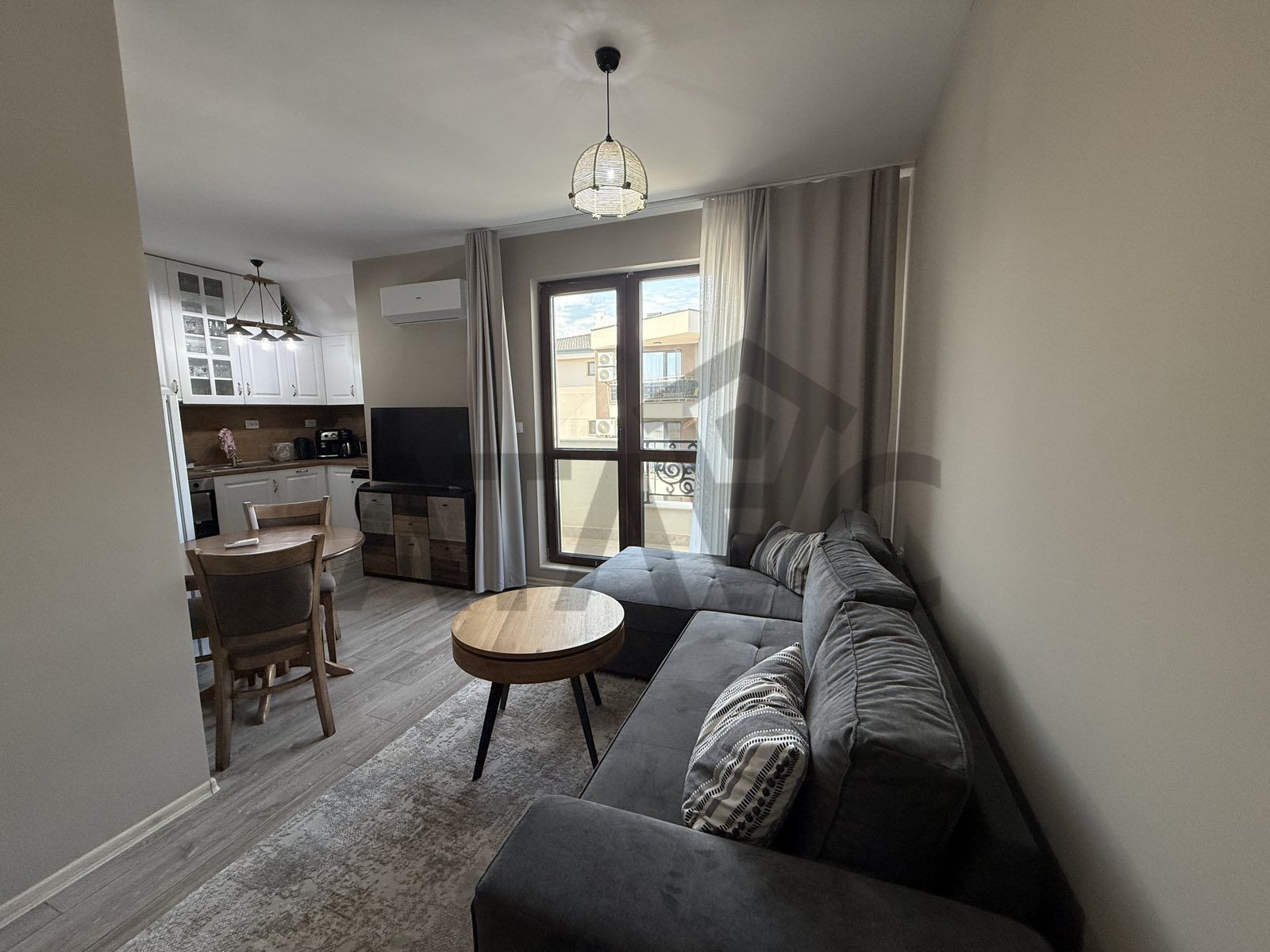 АТЛАС имоти ви представяме стилен и уютен двустаен апартамент, разположен в модерен затворен комплекс, осигуряващ спокойствие, сигурност и комфорт на своите обитатели. Имотът е напълно обзаведен и готов за нанасяне, като съчетава функционалност и съвременен дизайн. Разпределението е отлично организирано и включва антре, светла дневна с кухненски бокс, уютна спалня, баня с тоалетна, тераса и практична изба. Апартаментът е с югозападно изложение, което гарантира изобилие от естествена светлина през целия ден, създавайки топла и приветлива атмосфера във всяко помещение. Жилището е изключително светло и топло, което допринася за ниски разходи за отопление и висок комфорт през всички сезони. Комплексът предлага контрол на достъпа, поддържани общи части и спокойна жилищна среда - идеален както за лично ползване, така и за инвестиция с отличен потенциал за отдаване под наем. Не пропускайте възможността да притежавате имот, който съчетава удобство, стил и отлична локация! БЪДЕТЕ ПРОФЕСИОНАЛИСТИ в избора на жилище с АТЛАС НЕДВИЖИМИ ИМОТИ ! За повече въпроси и огледи се свържете с нас!