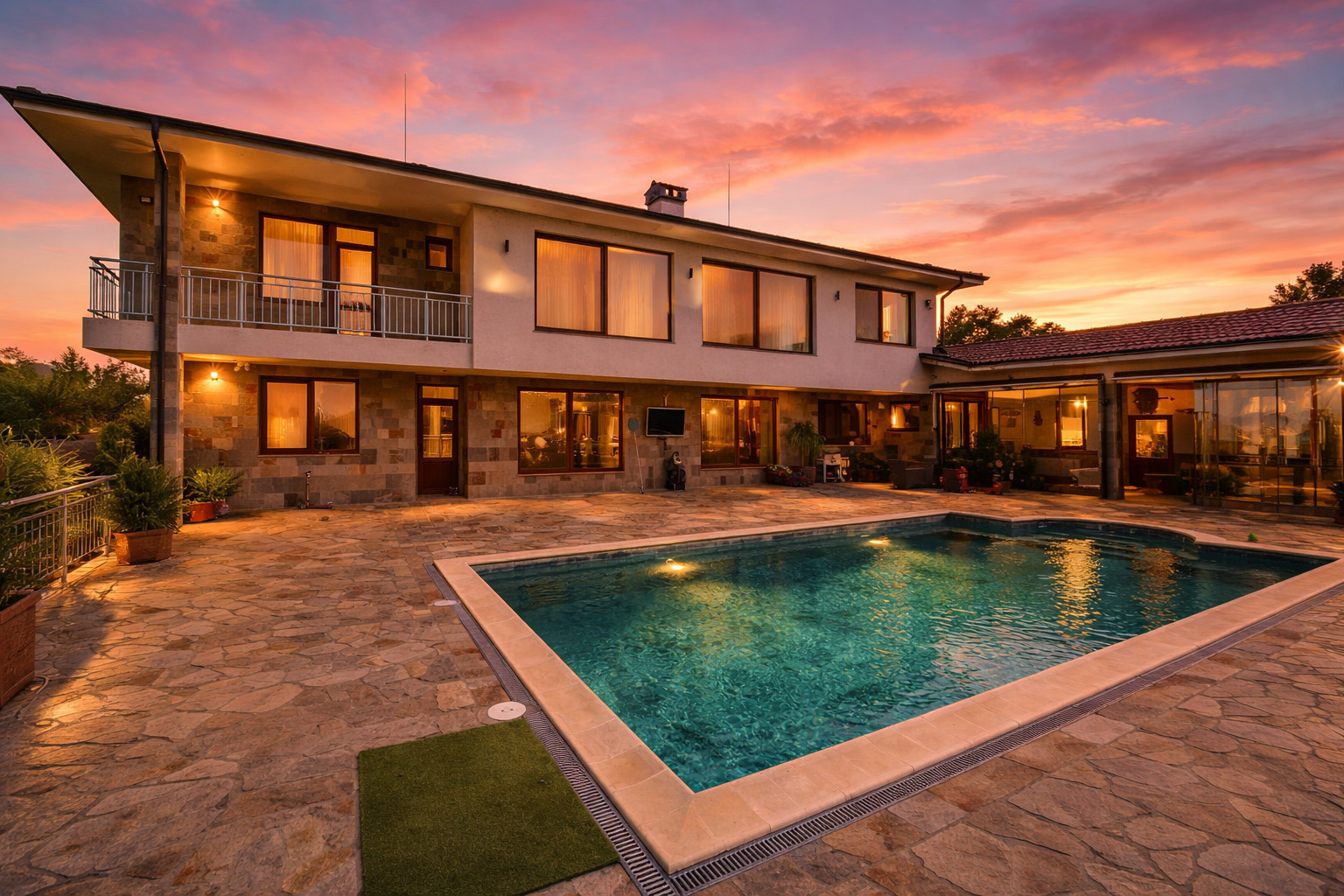 С разгъната застроена площ от 630 кв.м, къщата е проектирана с мисъл за удобство, уют и възможност за развитие на успешен бизнес: