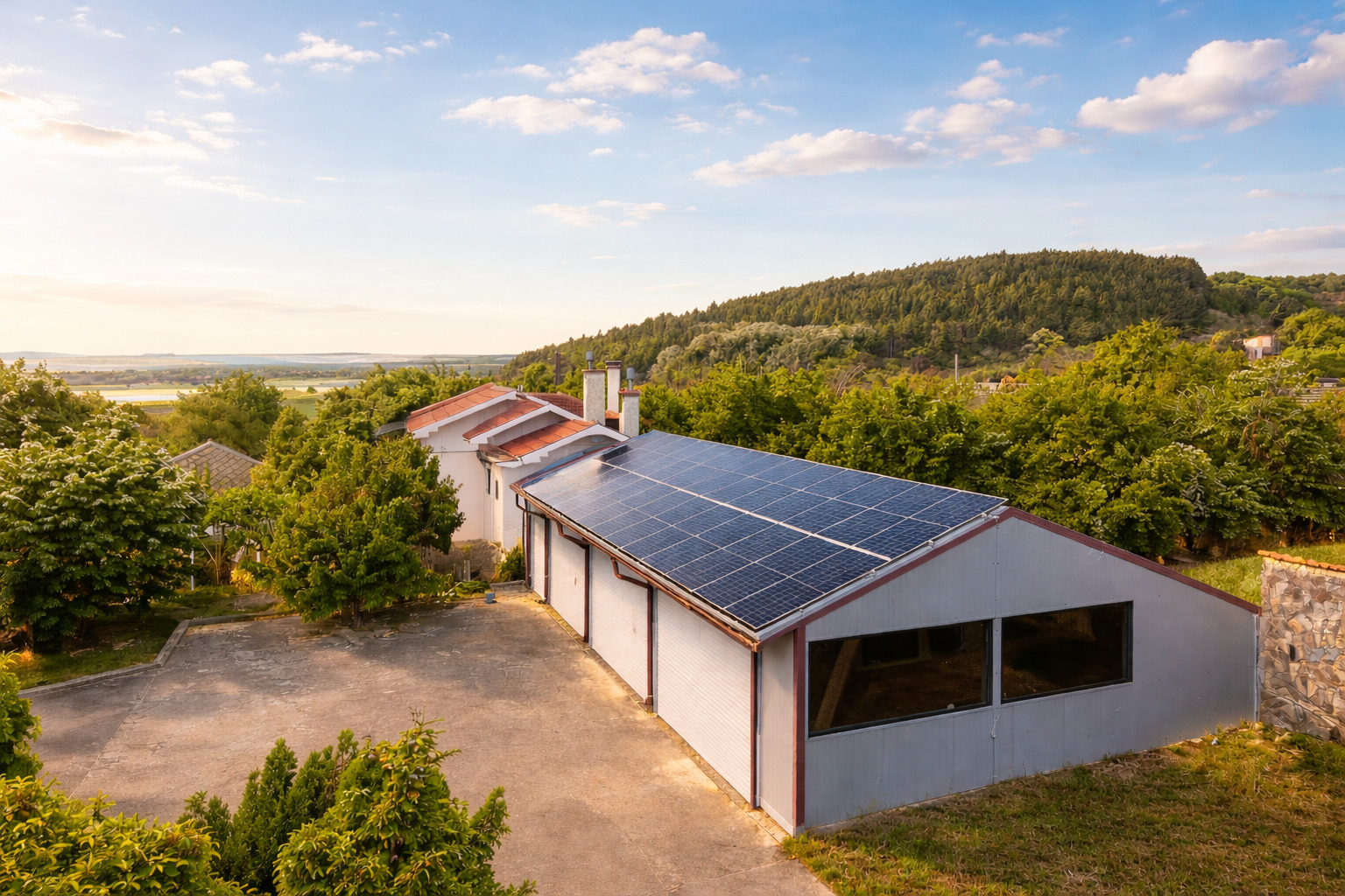 5 гаража (2 с топла връзка към къщата + 3 отделни)