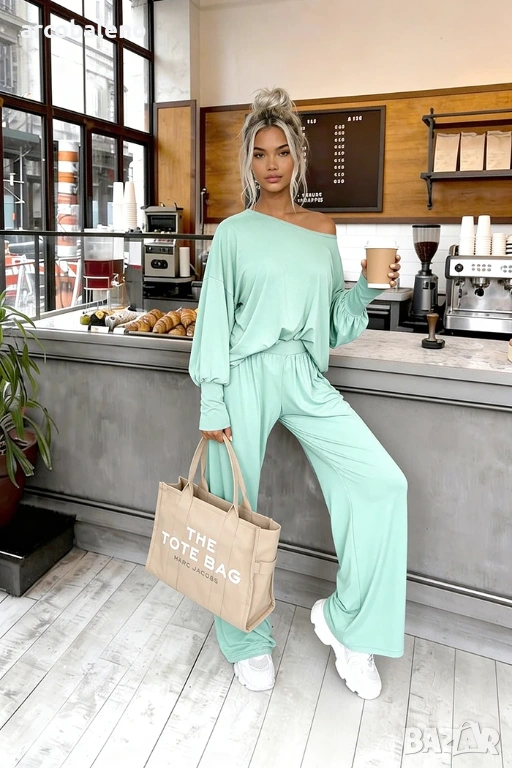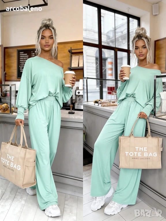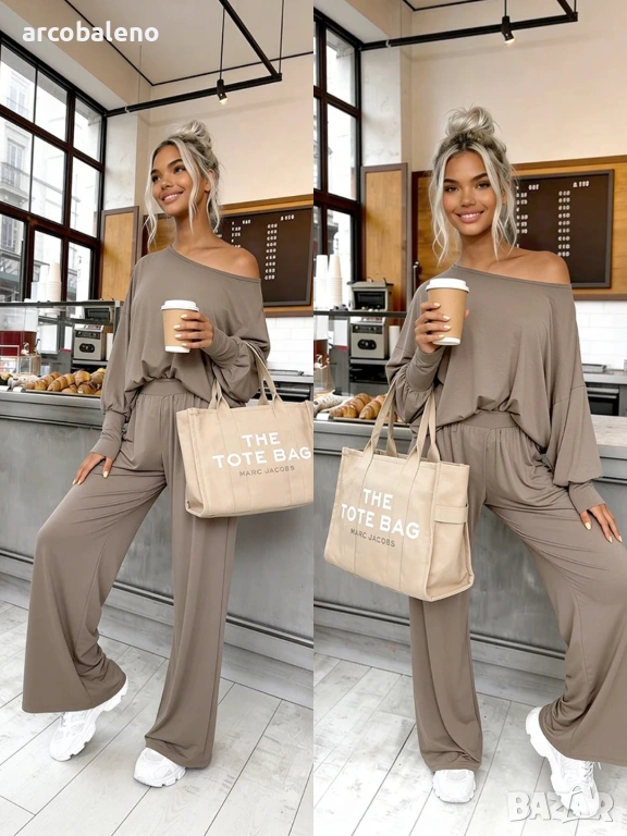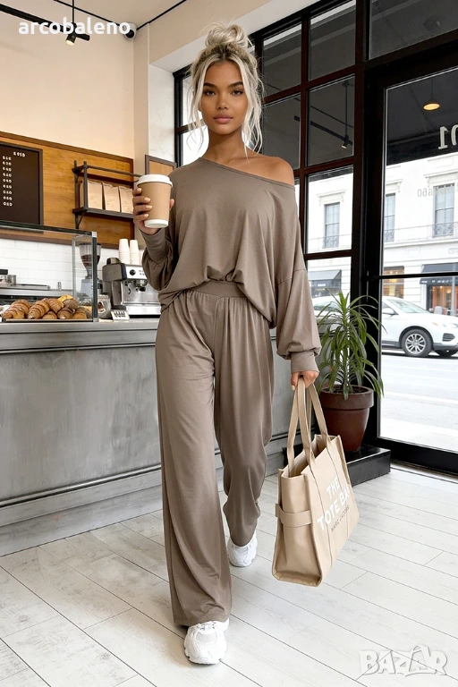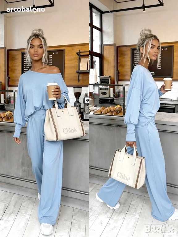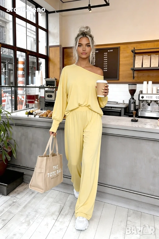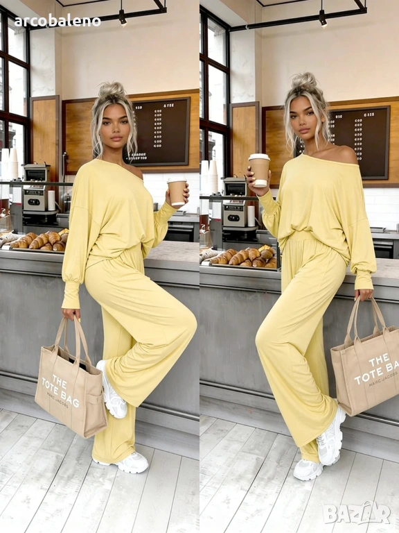 Комплект, изработен от 95% естествена вискоза ? Открийте нашия бестселър! Комплектът Aurelia е изработен от 95% ефирна вискоза . Широки панталони с висока талия и широка, нестягаща еластична лента + широка блуза с фуниевидно деколте и маншети.
