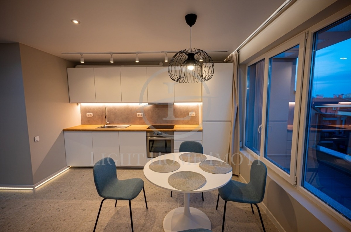 Състояние на имота: Апартаментът се продава СТИЛНО ОБЗАВЕДЕН, с висококачествени ел. уреди и мебели, което ви дава възможността да се нанесете веднага или да го закупите с цел инвестиция и отдаване под наем! Апартаментът разполага с цялостна система Умен дом (Smart Home).