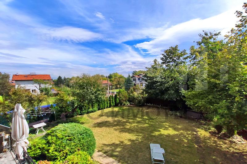 ПРОСТОРНА, ДВУЕТАЖНА къща с панорамна югоизточна гледка. Дворът е озеленен и голям (640 кв. метра) със зона за барбекю, с асфалтирана площадка и навес за паркинг. Има автоматична врата. Намира се в близост до ул. 'Вечерница'. Местноста включва разнообразие от многофамилни, еднофамилни и редови къщи. Построена е с красив класически дизайн, който същевременно е и функционален. Имотът разполага с площ 150 кв.м. на два нива.