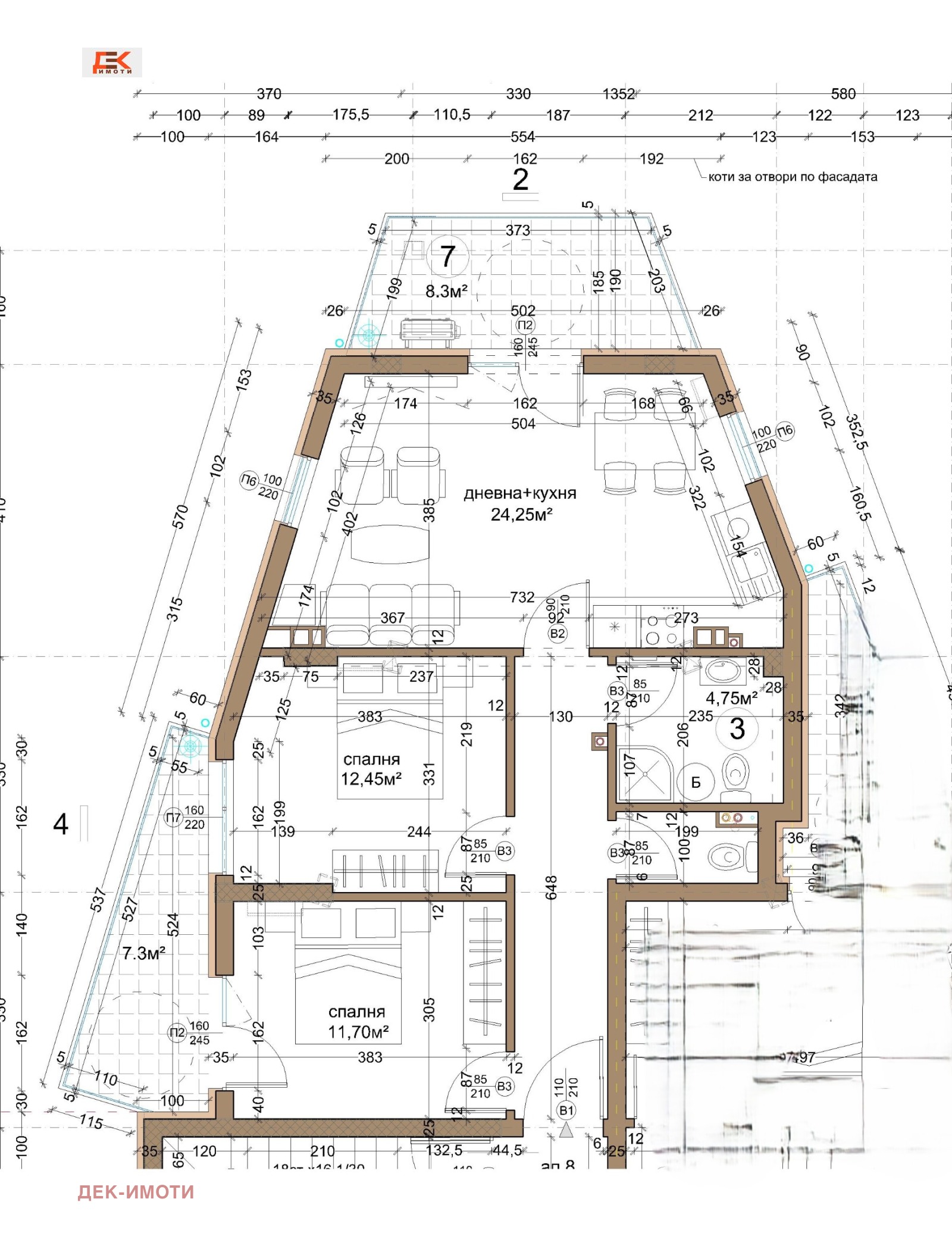 3-стайният апартамент предлага функционално и добре организирано разпределение просторна дневна зона с кухня, две самостоятелни спални, баня с тоалетна и балкон. Проектиран е с мисъл за комфортно семейно обитаване, работа от дома и ясно разграничение на зоните.