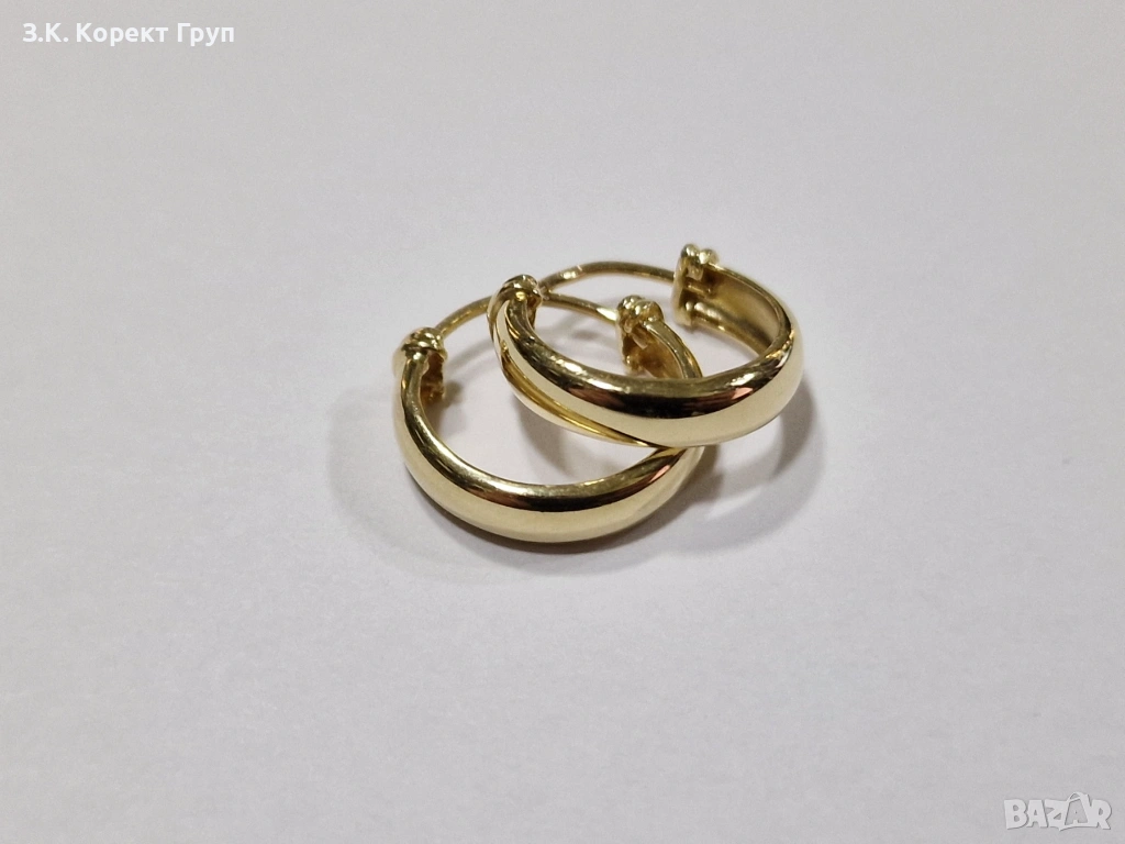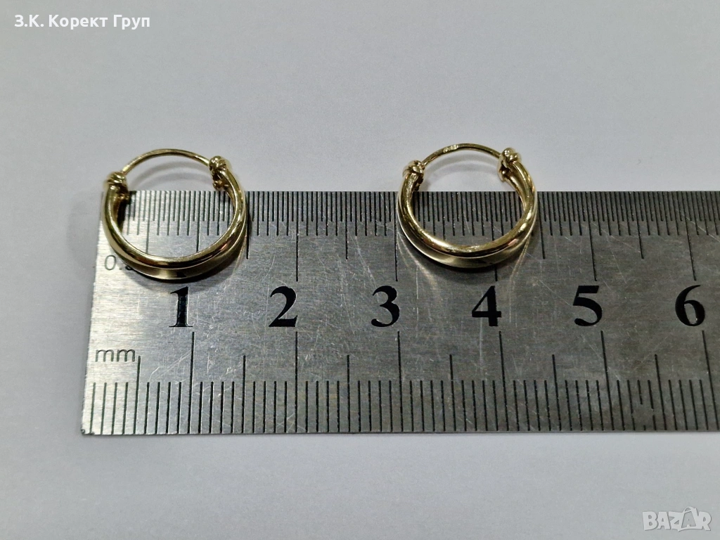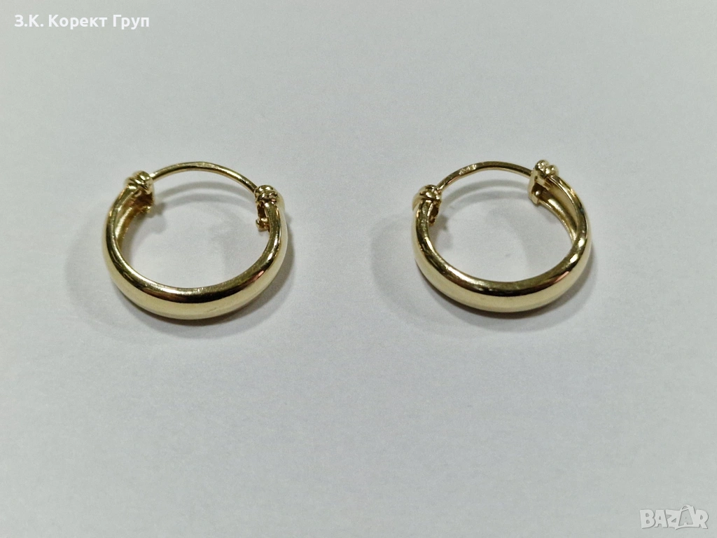 Обеците не са носени много, отлично състояние видимо от снимките. Тегло – 1,28 гр / Диаметър: 1,5 см