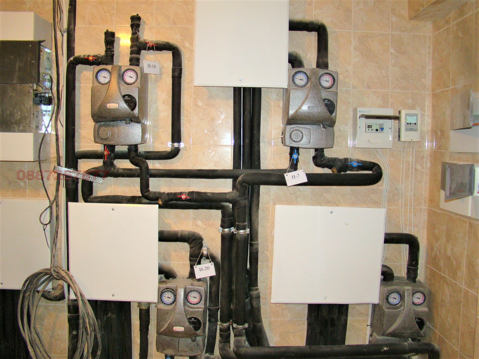 Сутерен: парно с чилър вода-вода, санитарен възел, винарска изба, билярдна зала с камина и стълби към градината, фитнес, асансьор, две оборудвани складови помещения, работилница, машинна зала за басейн.