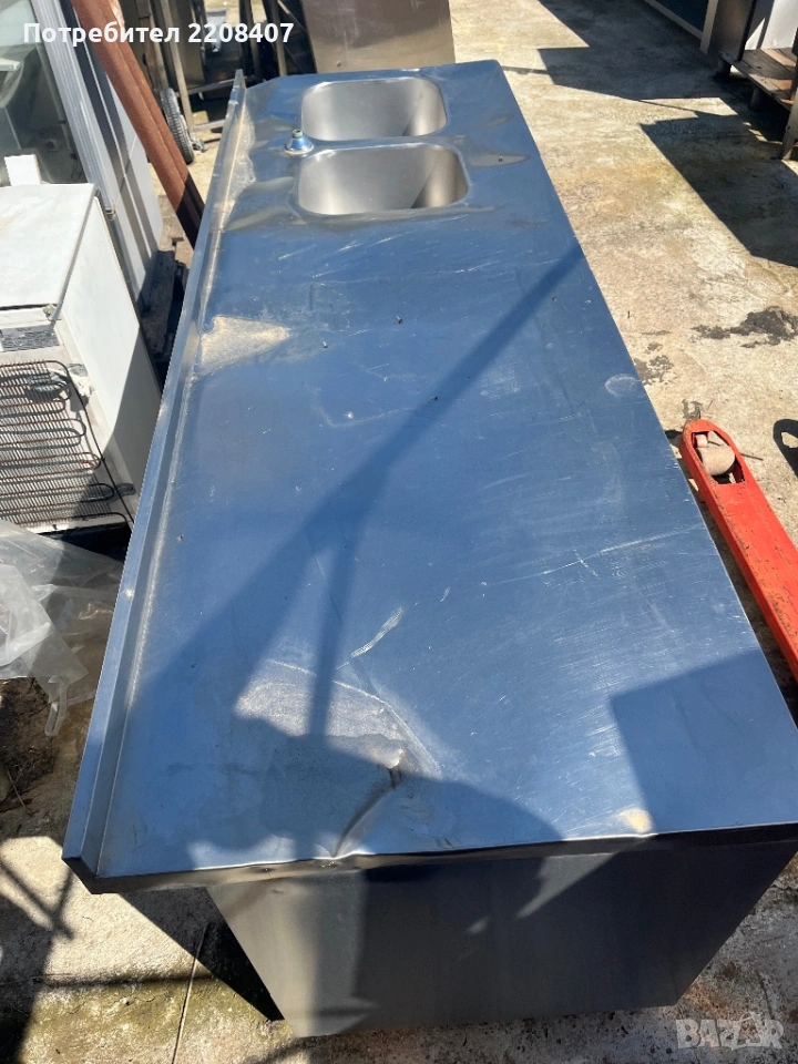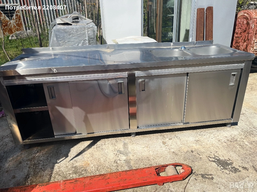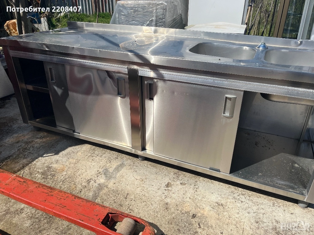 Работна маса с мивка непъждавейка с плъзгащи врати отдолу с размери 220/70/85 см със забележки изпращам по еконт