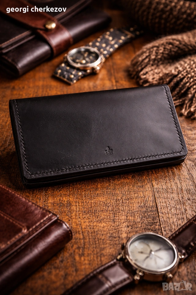 ръчно изработено портмоне от естествена кожа с 2 отделения за пари и 6 отделения за карти