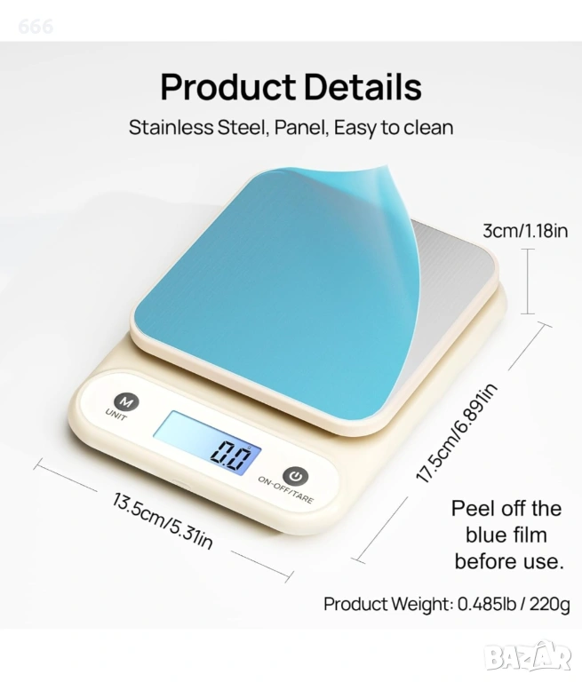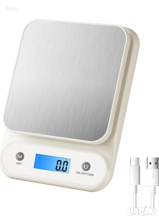 Компактен 7-инчов дизайн: Изключително компактен размер, интегрира функции като USB-C зареждане, тара, LCD дисплей с подсветка и платформа от неръждаема стомана. Позволява 4 мерни единици (oz, lb, g, kg). Кухненски прибори и джаджи. Размер на продукта: 6,89 x 5,31 x 1,18 инча. Тегло на продукта: 0,485 паунда.