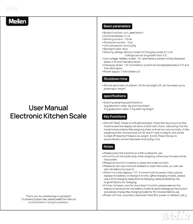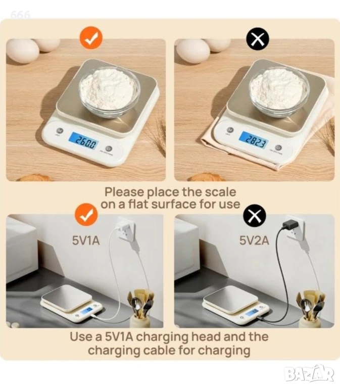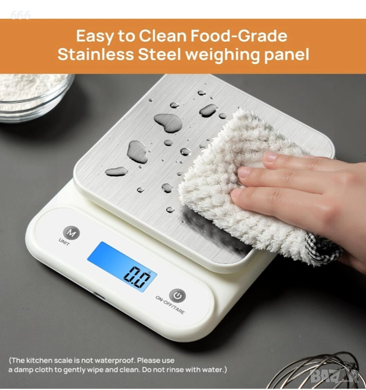 【Многофункционална употреба】Забърсвайте с влажна кърпа за поддръжка. Подходящ за претегляне на храна, хляб, кафе, месо, порции храна за домашни любимци и здравословни диети. Перфектен за кухни, лаборатории, занаятчийски ателиета или за употреба в движение.