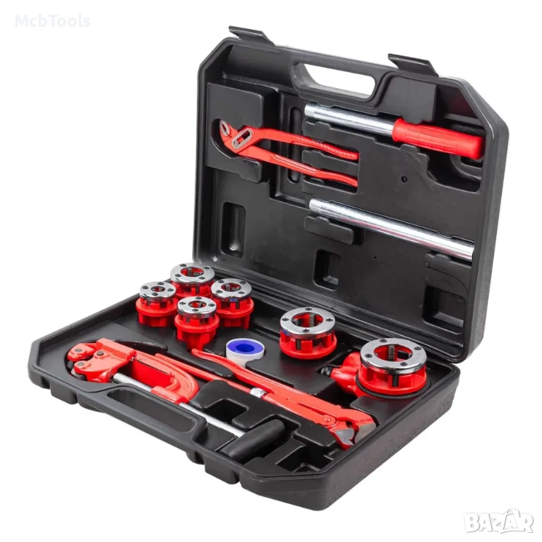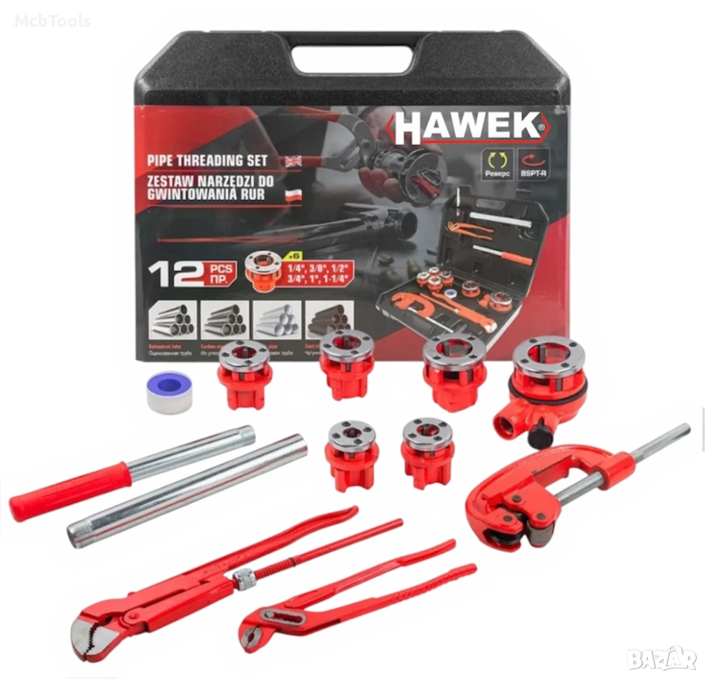 Комплектът винторезка HAWEK HW-2059 е отлично решение за професионалисти и домашни майстори, които се занимават с монтаж и ремонт на водопроводни и отоплителни инсталации. С него лесно и бързо се нарязва резба върху тръби и се извършват различни монтажни дейности без необходимост от допълнителни инструменти.