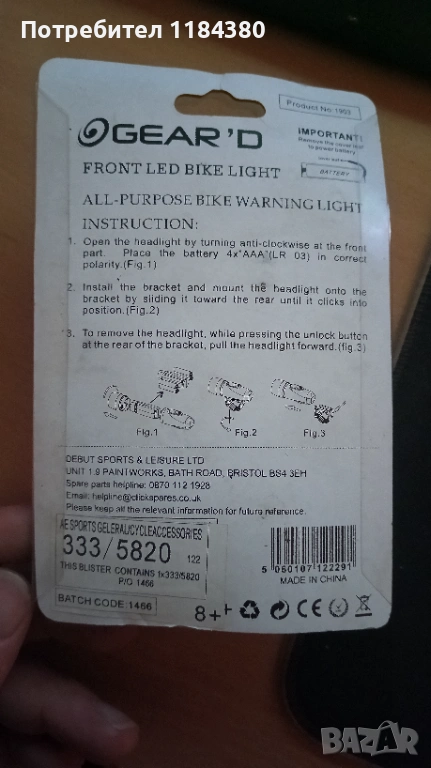 Фар за велосипед LED Gear'D, снимка 1 - Аксесоари за велосипеди - 54130712 Фар за велосипед LED Gear'D, снимка 2 - Аксесоари за велосипеди - 54130712 Фар за велосипед LED Gear'D, снимка 3 - Аксесоари за велосипеди - 54130712 Фар за велосипед LED Gear'D, снимка 4 - Аксесоари за велосипеди - 54130712 1/4