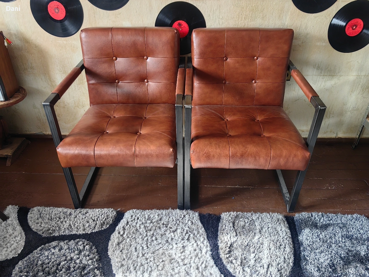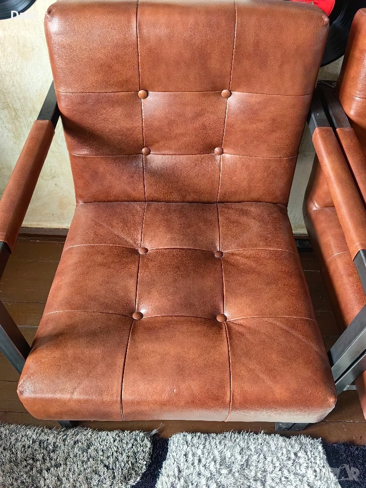 Кожен фотьойл с метална конструкция , снимка 1 - Дивани и мека мебел - 54130908 Кожен фотьойл с метална конструкция , снимка 2 - Дивани и мека мебел - 54130908 1/2