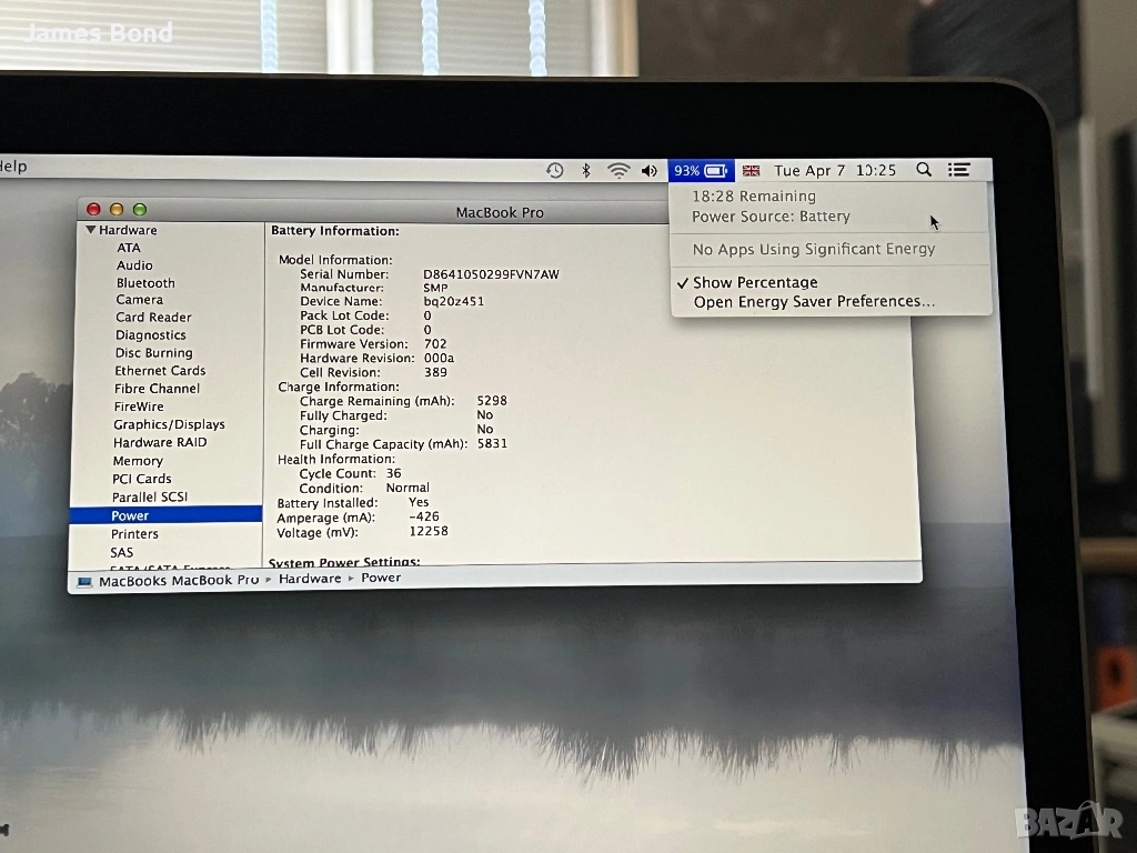 Продавам отлично запазен MacBook Pro 13-инча (модел A1502, Early 2013).