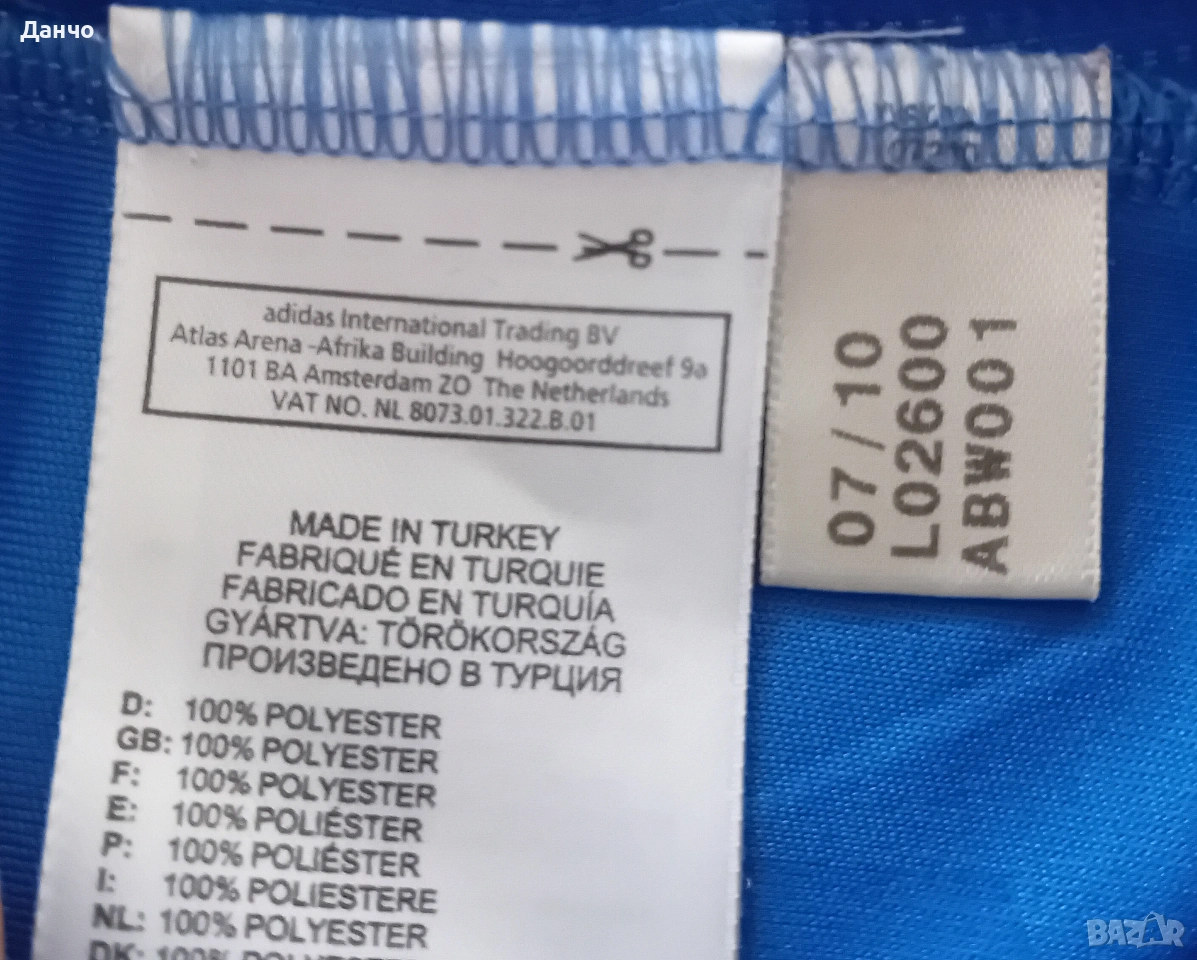 марка- Адидас, размер- Л , материя- полиестер, има малки забележки / снимани /
