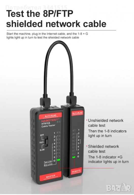Професионален LAN кабелен тестер HABOTEST HT812 - RJ45/RJ11, CAT5/CAT6, LED индикатор , снимка 1 - Мрежови адаптери - 54131307  Професионален LAN кабелен тестер HABOTEST HT812 - RJ45/RJ11, CAT5/CAT6, LED индикатор , снимка 2 - Мрежови адаптери - 54131307  Професионален LAN кабелен тестер HABOTEST HT812 - RJ45/RJ11, CAT5/CAT6, LED индикатор , снимка 3 - Мрежови адаптери - 54131307  Професионален LAN кабелен тестер HABOTEST HT812 - RJ45/RJ11, CAT5/CAT6, LED индикатор , снимка 4 - Мрежови адаптери - 54131307  Професионален LAN кабелен тестер HABOTEST HT812 - RJ45/RJ11, CAT5/CAT6, LED индикатор , снимка 5 - Мрежови адаптери - 54131307  Професионален LAN кабелен тестер HABOTEST HT812 - RJ45/RJ11, CAT5/CAT6, LED индикатор , снимка 6 - Мрежови адаптери - 54131307  Професионален LAN кабелен тестер HABOTEST HT812 - RJ45/RJ11, CAT5/CAT6, LED индикатор , снимка 7 - Мрежови адаптери - 54131307 1/7