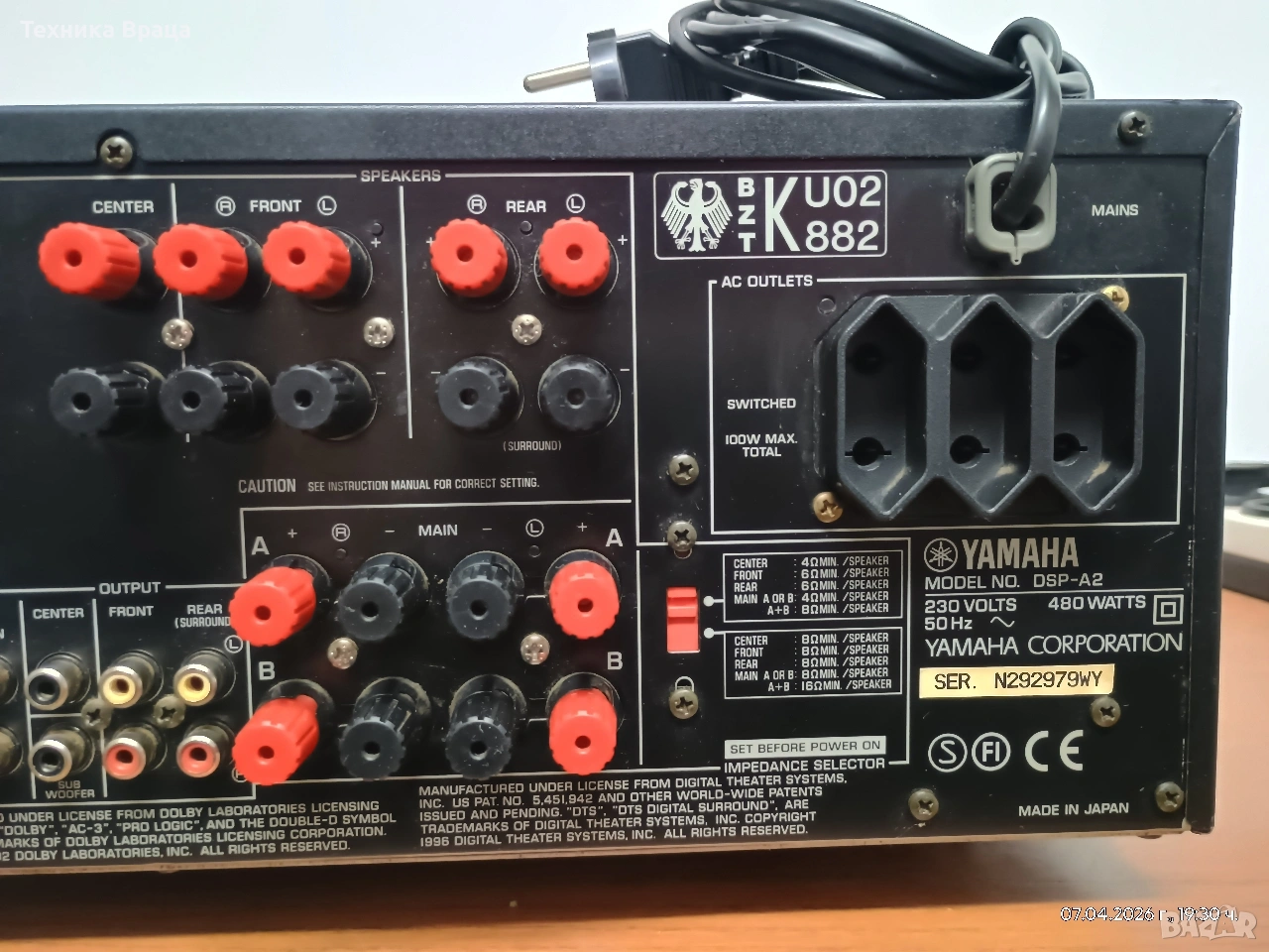 Yamaha DSP-A2. Мощен висококачествен A/V ресивър. 19.5кг. Перфектен!