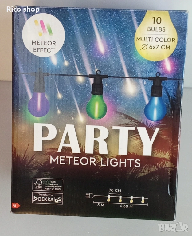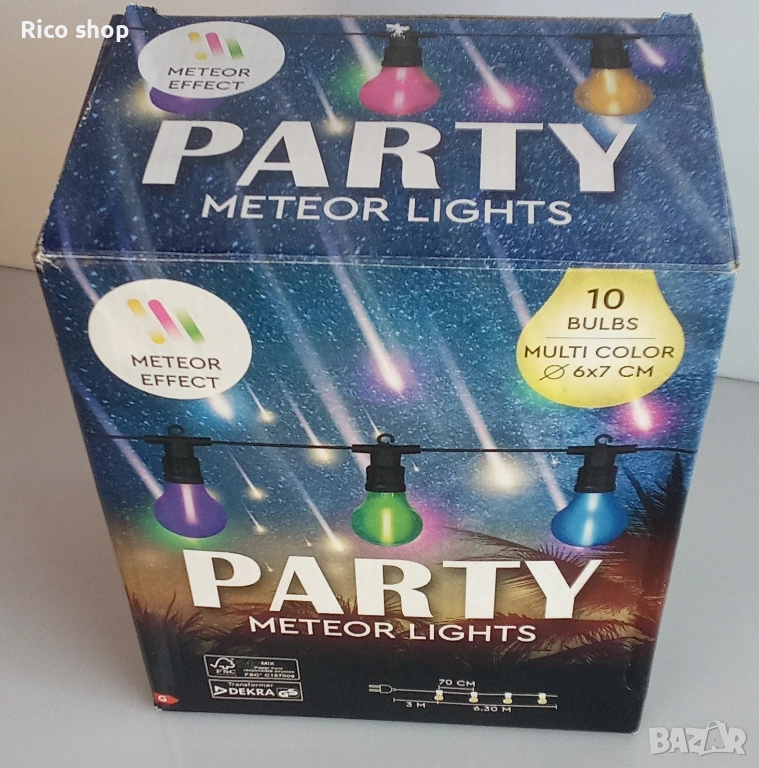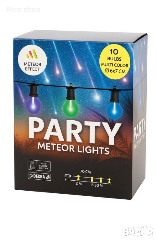 Този комплект включва 10 лампички през 70 см LED крушки, които създават метеорен ефект в нощното небе. Идеални за декорация на партита, събития и други поводи.