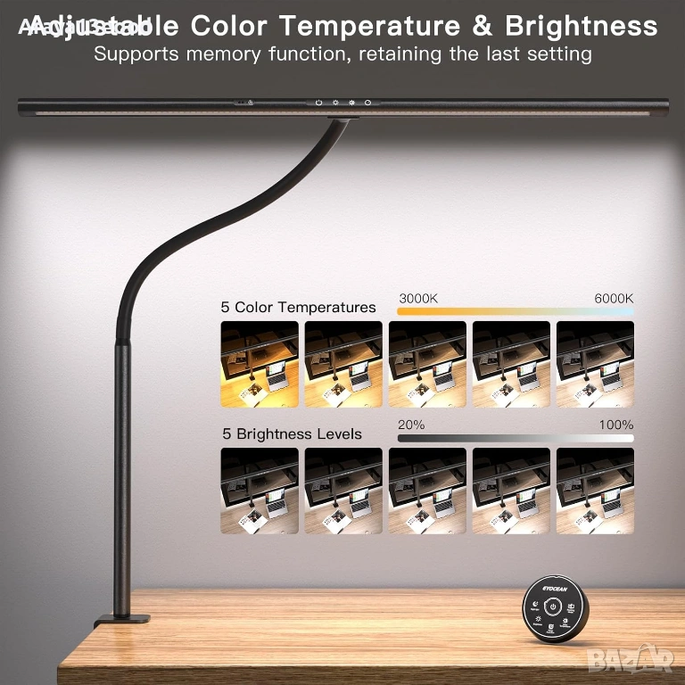 EYOCEAN LED Desk Lamp предлага модерна технология, защита за очите и гъвкави настройки, което я прави идеален избор за продуктивна и комфортна работа.