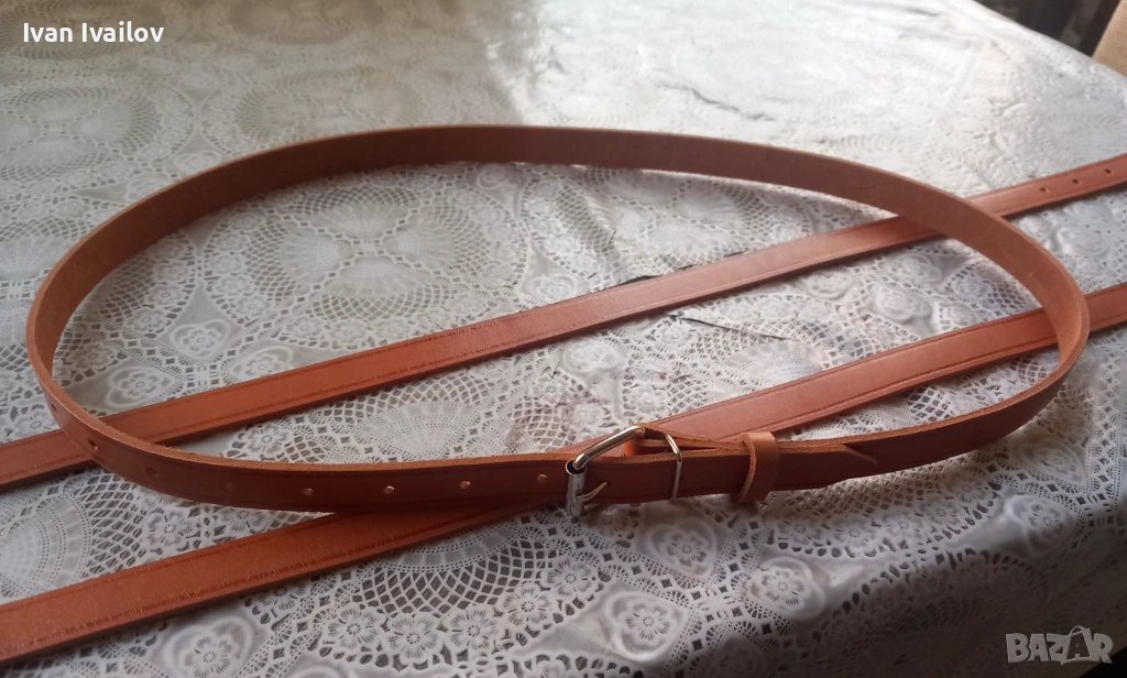 Продавам ръчно изработен мъжки колан от висококачествена естествена кожа. Моделът е с ширина 2.5 см – изключително елегантен и прибран, подходящ за официални панталони или ежедневни дънки. Цветът е наситен керемиден нюанс (коняк), който стои много стилно.