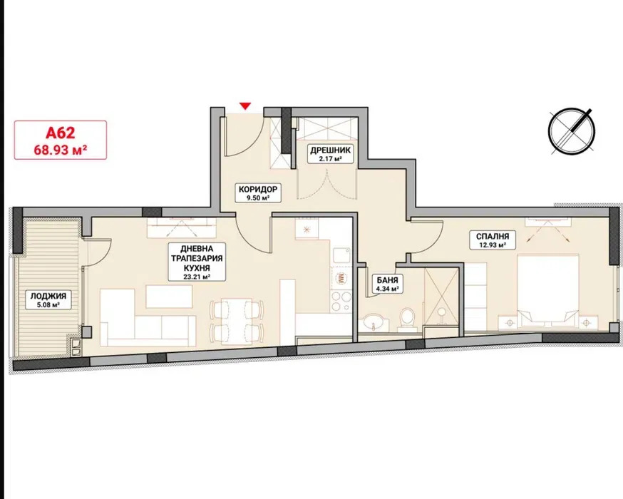 Титан Пропъртис офис - Бул.България с радост предлага на Вашето внимание двустаен апартамент за продажба в кв. Младост 4. Жилището е със застроена площ 57,23 кв.м., ситуирано на 6-ти от общо 7 етажа в нова сграда, която ще бъде въведена в експлоатация средата на 2027 г. Изложението изток/север осигурява приятна светлина. Разпределението включва входно антре, дневна с кухненски бокс, спалня, дрешник и баня с тоалетна и тераса. Апартаментът се предлага на ш.з., което дава възможност за завършване по собствен дизайн. Отоплението е централно (тец). Практичният план и новото строителство правят имота подходящ за семейство или за отдаване под наем.