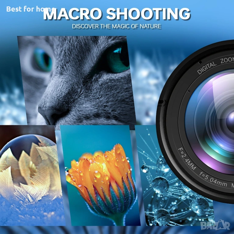 4K цифров фотоапарат, 56MP широкоъгълна камера + макро обектив, 18X цифрово увеличение с WiFi