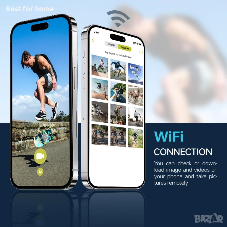 WIFI ФУНКЦИЯ 4K камерата е оборудвана с WiFi функция, така че можете да изтеглите приложението на вашия смартфон и да свържете камерата към него. Можете лесно да управлявате цифровата камера чрез вашия смартфон или да изтегляте снимки и видеоклипове от камерата директно на вашия смартфон, без да е необходимо USB предаване.