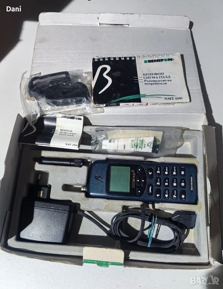 Продавам мобифон Benefon Sigma Gold NMT 450i.Пълен комплект,както е купен от "Мобиком", през 90-те години.Не е тестван.