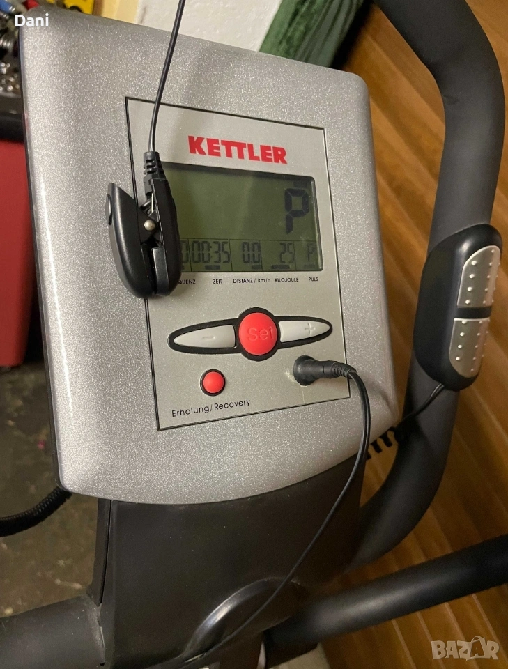 Продавам фитнес уред,кростренажор Кетлер/Kettler Vito XS.Отлично състояние,без луфтове и шумове.Тест и взимане от място,възможност за транспорт. Технически параметри: Кростренажор с магнитна натоварваща система в 10 степени и 14 кг. маховик. Компютър с голям LCD дисплей и възможност за едновременно наблюдаване на 5 важни параметъра. Измерване на пулса, чрез специални сензорни пластини на ръкохватките и клип за ухо.