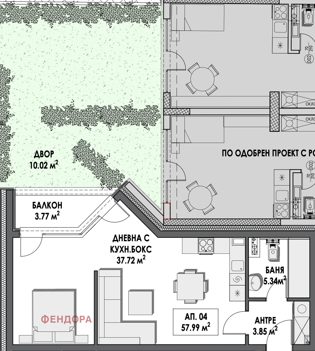 * Тип имот: Едностаен с двор