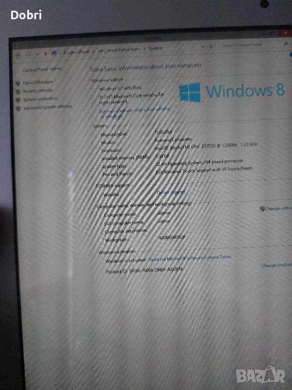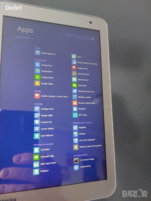 Таблет Toshiba с Windows 8.1, работи перфектно, батерията държи.