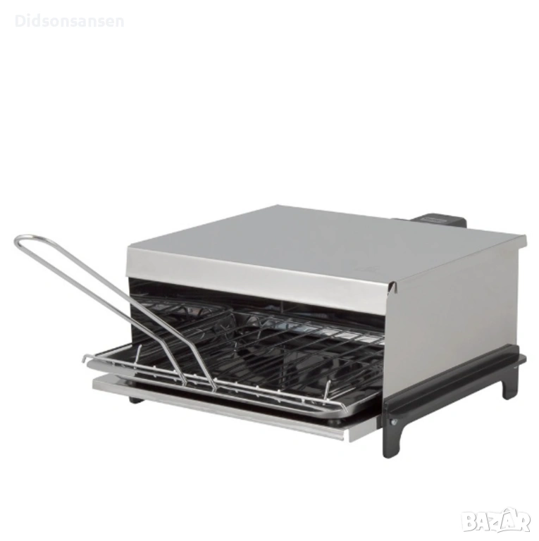 Продуктът предлага скара, тавичка и метална дръжка за изваждане на тавичката.