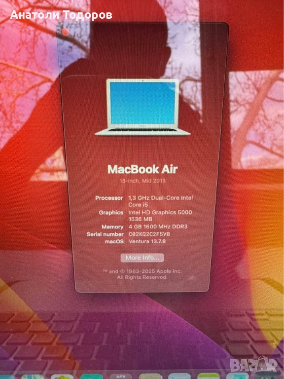 MacBook Air - A1466, снимка 1 - Лаптопи за дома - 54132369 MacBook Air - A1466, снимка 2 - Лаптопи за дома - 54132369 MacBook Air - A1466, снимка 3 - Лаптопи за дома - 54132369 MacBook Air - A1466, снимка 4 - Лаптопи за дома - 54132369 MacBook Air - A1466, снимка 5 - Лаптопи за дома - 54132369 MacBook Air - A1466, снимка 6 - Лаптопи за дома - 54132369 MacBook Air - A1466, снимка 7 - Лаптопи за дома - 54132369 MacBook Air - A1466, снимка 8 - Лаптопи за дома - 54132369 MacBook Air - A1466, снимка 9 - Лаптопи за дома - 54132369 MacBook Air - A1466, снимка 10 - Лаптопи за дома - 54132369 1/10