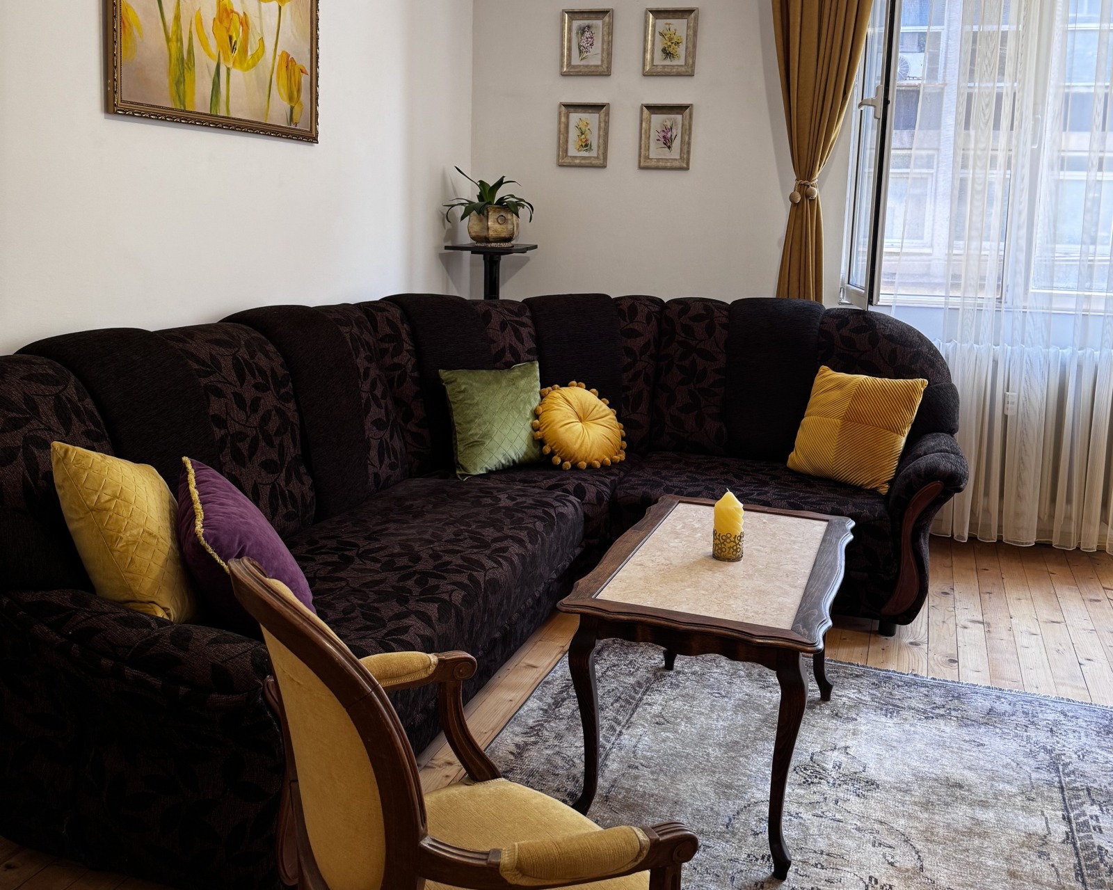 Тристаен апартамент в сърцето на сатра София, кръстовището на улица Георги Раковски и булевард Дондуков. Напълно обзаведен. Състои се от две самостоятелни спални, просторен хол, дневна с кухненска част, баня с тоалетна, втора тоалетна и тераса към дневната.