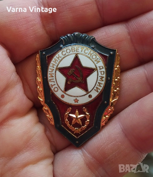 Знак Отличник Советской армии (Отличен войник от Съветската армия). бронз. емайл. → Обява 54132466
