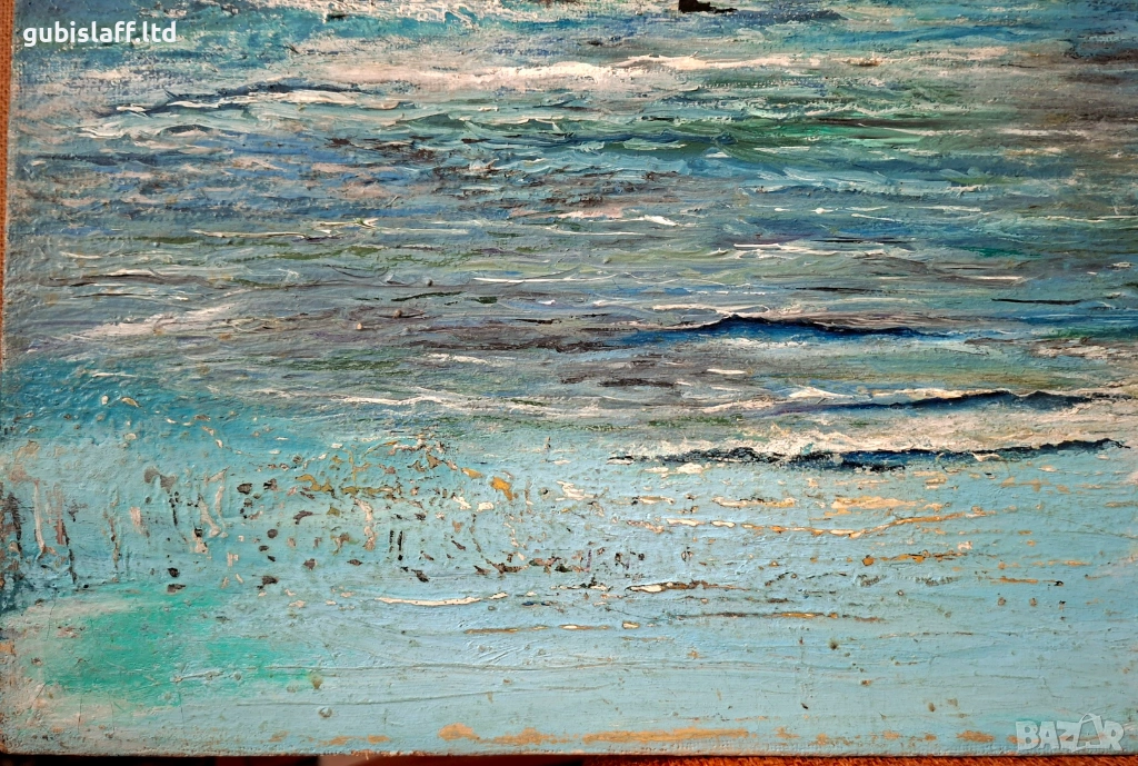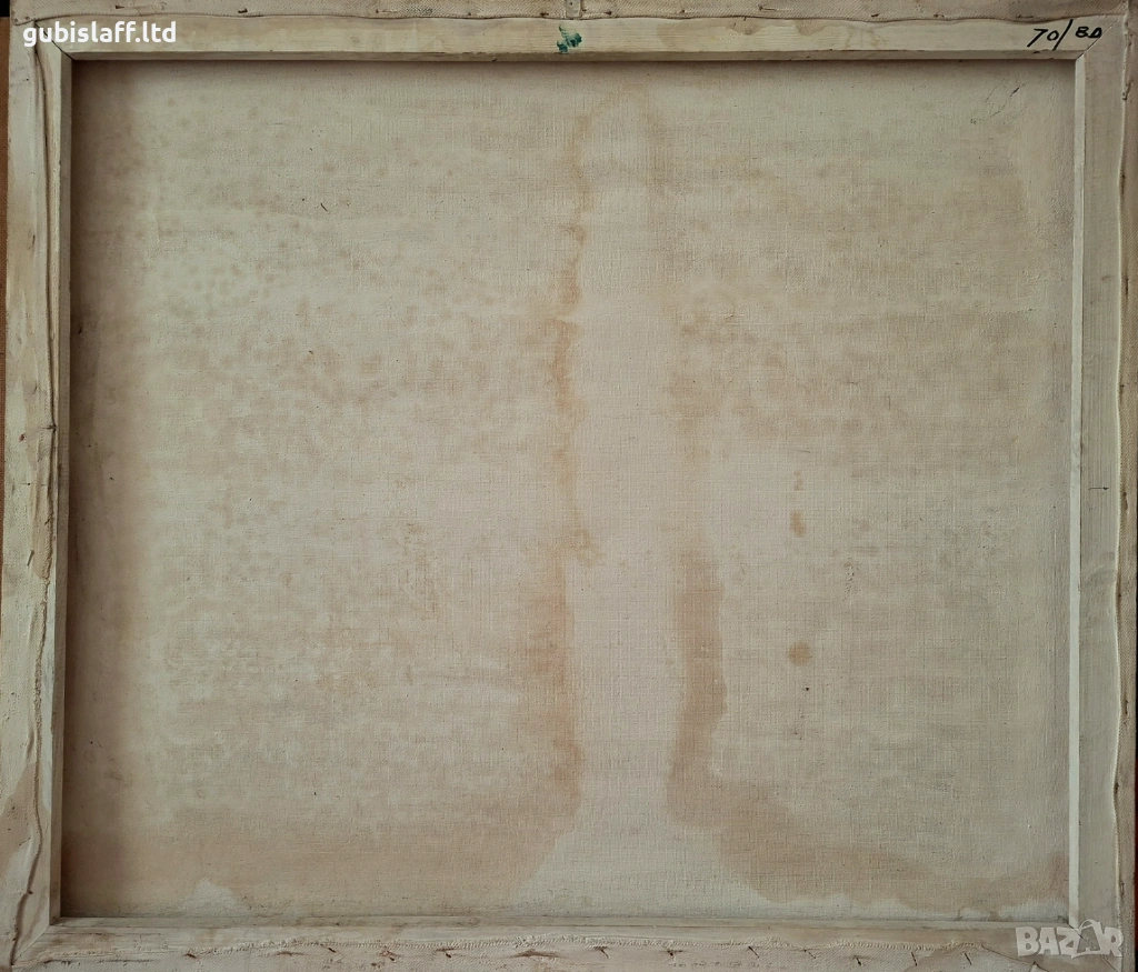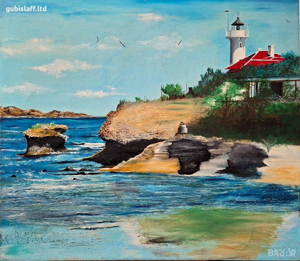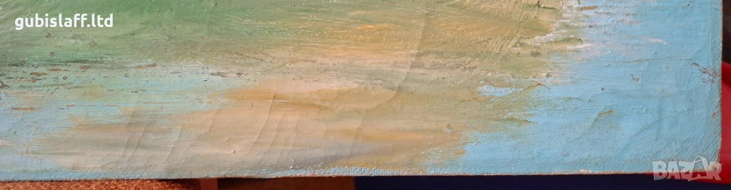 Акрилни бои, платно, размер 80х70 см., има забележки долу вляво и вдясно, неподписана, вероятно е стара работа от бургаския художник Росен Поптомов.