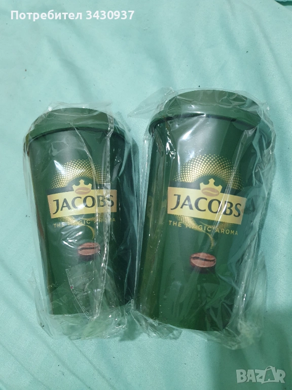 Продавам чисто нова термочаша Jacobs в разпознаваемия за марката тъмнозелен цвят. Чашката е лека, удобна и идеална за кафе "в движение" (Coffee to go). Снабдена е с плътно затварящ се капак, който предпазва от разливане и запазва напитката топла за по-дълго време.