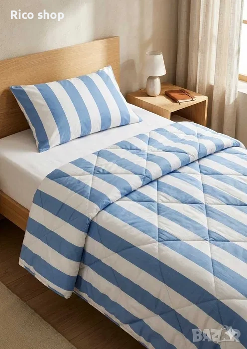 Комплект „Всичко в едно“: Получавате пълнено, капитонирано одеяло с възглавница. Няма нужда да купувате нищо друго – комплектът е готов за лягане веднага!
