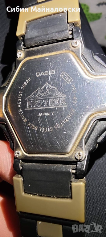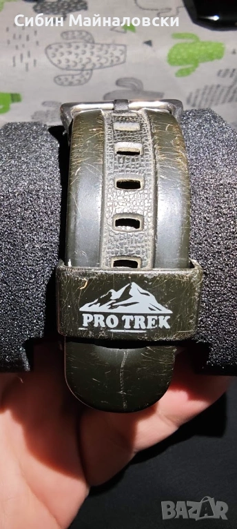 Продавам мъжки часовник Casio Pro-Trek PRT-41 Triple Sensor. Безценен аксесоар за туристи и за хора, водещи активен начин на живот! Водоустойчив 100 м. Всички сензори работят перфектно — барометър, термометър, висотомер (алтиметър), компас. Оригинална Pro-Trek каишка. С нормални следи от употреба, видни по снимките. Сменена батерия! Цена €80. За гр. София предпочитам лично предаване, за страната — Еконт или Спиди с опция преглед и тест.